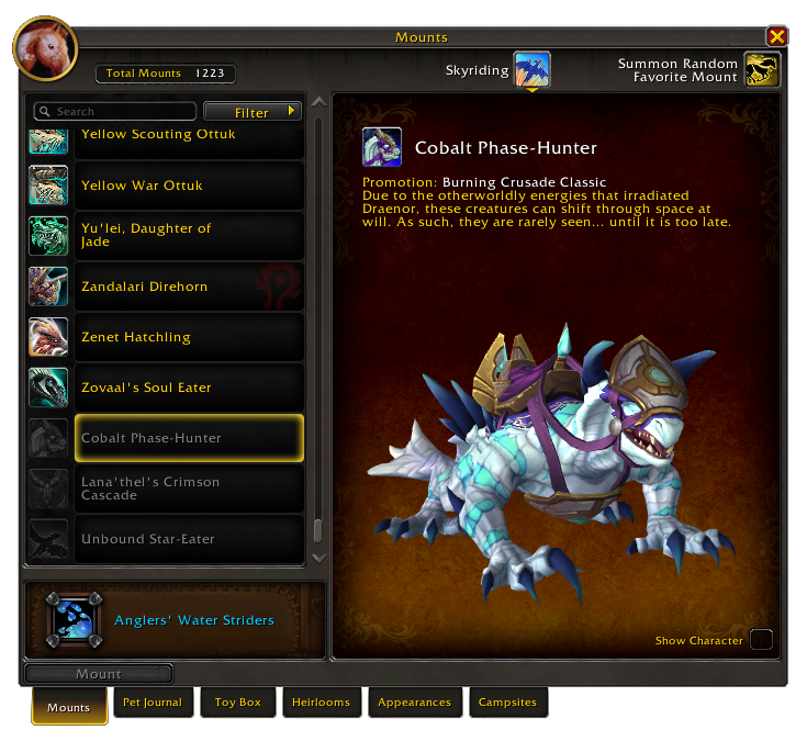 While Blizzard has yet to make an official announcement, the Cobalt Phase-Hunter mount is now visible in-game within the Mount Journal, suggesting that the promotion could go live very soon.