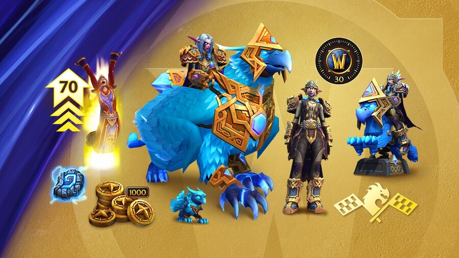 Save up to 50% and heat up your WoW Classic progression experience during your adventures in Azeroth with the Blazing Heroic Pack, which includes Lil’ Wrathion pet for both WoW Classic progression and modern World of Warcraft characters, the Avatar of Flame flying mount for WoW Classic progression characters, and a Runebound Firelord Skyriding mount for modern World of Warcraft characters. WoW Classic progression characters will also receive the Hammer Regalia Transmog Set and the Town-In-A-Box Starter Set toy.