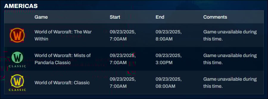 Mists of Pandaria Classic Extended Maintenance - September 23, 2025