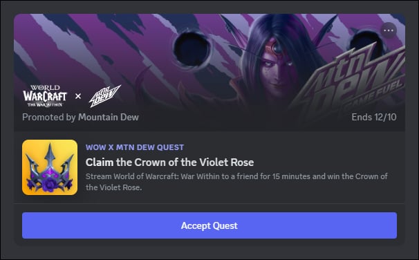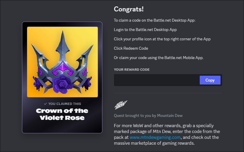 World of Warcraft x Mountain Dew Discord Quest Reward: Crown of the Violet Rose